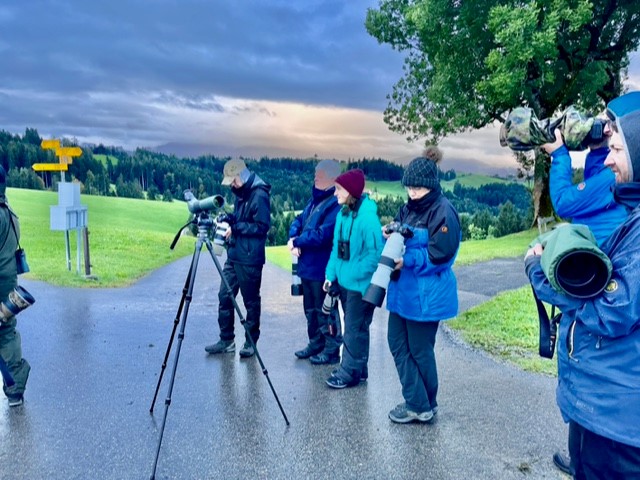 Trotz des frühen Treffens im Dunkeln in Speicher, das als optimaler Startpunkt für unsere ornithologische und fotografische Exkursion diente, entschieden sich knapp zehn Personen, diesen WWF-Kurs zu buchen. Obwohl es an diesem Morgen noch stockdunkel und regnerisch war, strahlten die Gesichter der Teilnehmenden aus den unterschiedlichsten Ecken der Schweiz und sogar von außerhalb. Alle freuten sich auf die spannende Führung mit Levi Fitze. Der Weg führte uns zunächst zur Neppenegg.