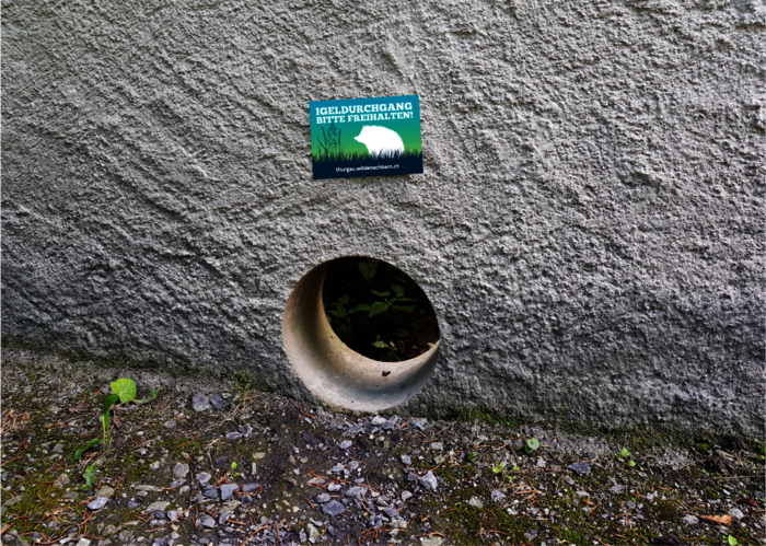- Kennzeichne die Öffnung mit einer kostenlosen Igelplakette – bestellbar im Shop (siehe Link unten).