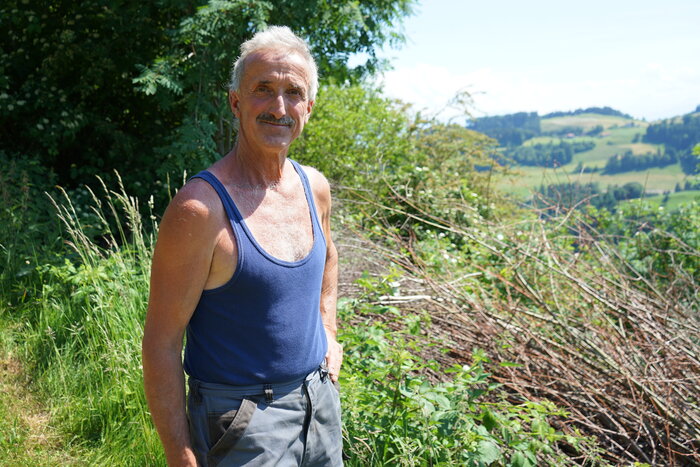Bild: Der Gewinner Rolf Bischofberger vor einer seiner Hecken (Foto: Roger Eggenberger).