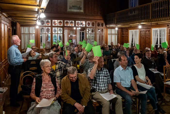 Vor der Mitgliederversammlung fesselte der ehemalige Bündner Wildhüter und WolfskennerGeorg Sutter die rund 140 Mitglieder und Interessierten mit seinen Ausführungen über die Rückkehr der Wölfe im Calandagebiet.