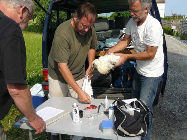Auch dieses Jahr wurden Jungstörche mit Sendern versehen, damit die Flugroute live mitverfolgt werden kann.