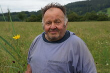 Der Hof von Hans Jud liegt im Weiler Rufi nahe dem Flugfeld von Schänis. Hier bewirtschaftet er 14 Hektar Land, das sich über einige Parzellen verteilt. Eine dieser Parzellen liegt tief in der Linthebene, im ehemaligen Sumpfland. Die 80 Are grosse, kompakte Wiese fällt schon auf den ersten Blick durch ihre Blütenpracht auf. Es ist die Wettbewerbs-Parzelle von Hans Jud. Obwohl rund herum der Boden intensiv genutzt wird, verzichtet der Milchbauer hier darauf und lässt hier keine Tiere weiden. Dank dem späten Schnittzeitpunkte können wertvolle Pflanzen ausblühen und ihren Bestand sichern. Natürlich sind noch mehr Arten auf Jud’s Wiese zu finden, doch 18 davon passen in die Kategorien der Wiesenmeisterschaft: Darunter sind Herbstzeitlose, Klappertopf, Kohldistel, Korbblütler, Orchideen, Vogel-Wicke, das bordeauxrote Rosengewächs und der Wiesenknopf. Unter den Gräsern sind Flaumhafer, Segge und Ruchgras zu finden. Die Pflanzen profitieren davon, dass der Boden seit Jahrzehnten geschont wird und es ist zu hoffen, dass dies nach dem Generationenwechsel auf dem Hof so bleibt. In der Nähe seines Stalls kultiviert Hans Jud 50 Hochstammbäume. Trotzdem zählt er sie nicht zu den ökologischen Ausgleichsleistungen, weil er den Boden darunter bewirtschaftet. Insgesamt bewirtschaftet Hans Jud seinen Hof aber relativ naturnah. Die Wiese bereitet ihm besondere Freude: „Als die Botanikerin kam, um den Pflanzenbestand für die Wiesenmeisterschaft aufzunehmen, wurde sie von einem grossen Orchester empfangen. So viele Grillen gibt es hier.“